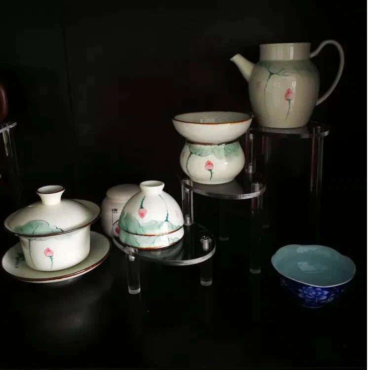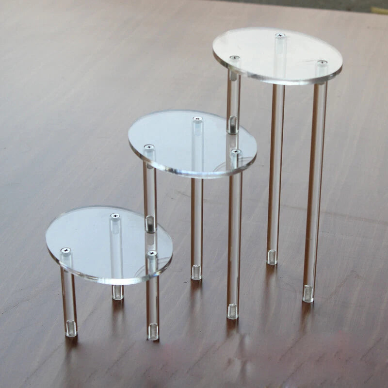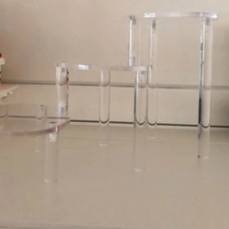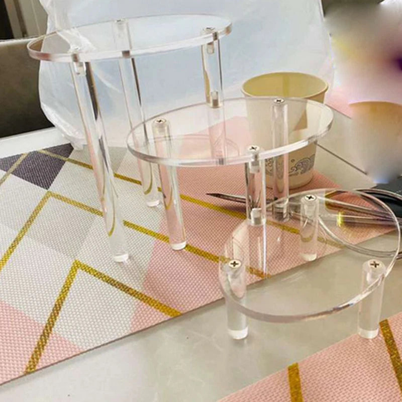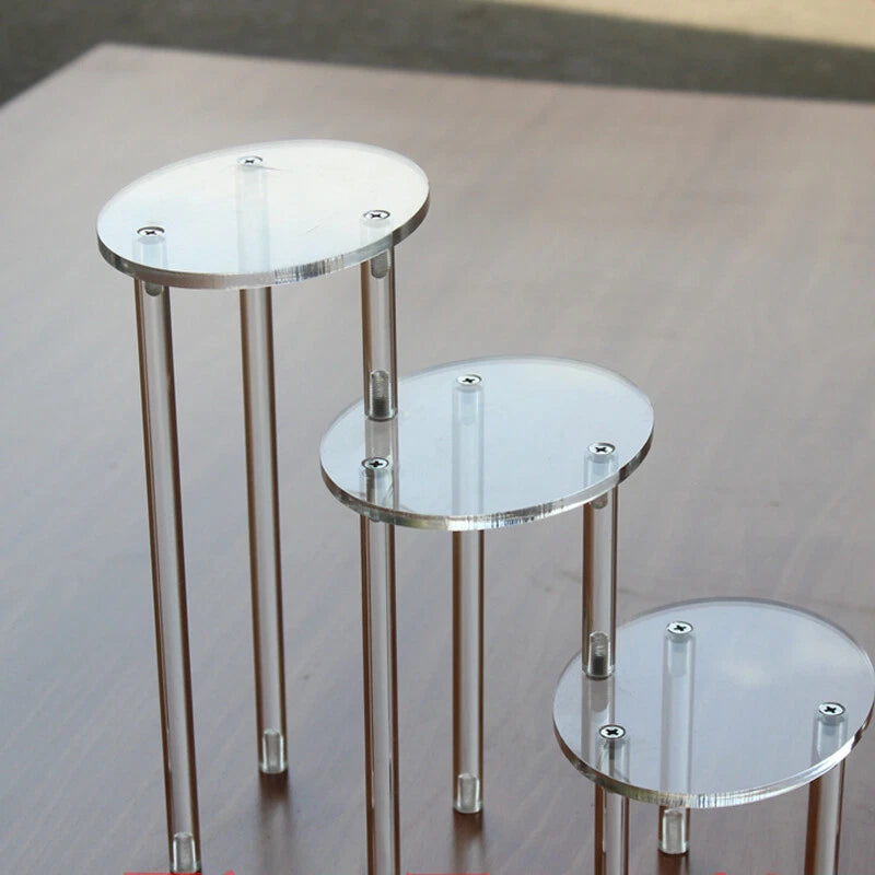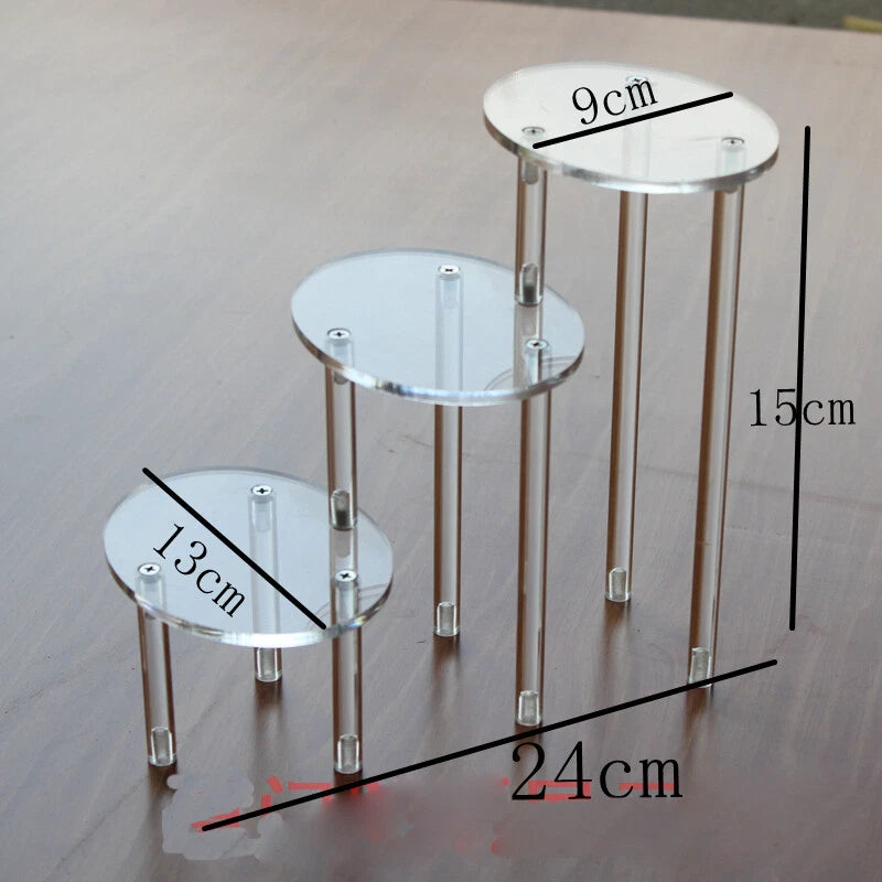 حامل عرض بيضاوي شفاف من الأكريليك بثلاثة أرفف، رف مجوهرات وزينة، ديكور طاولة