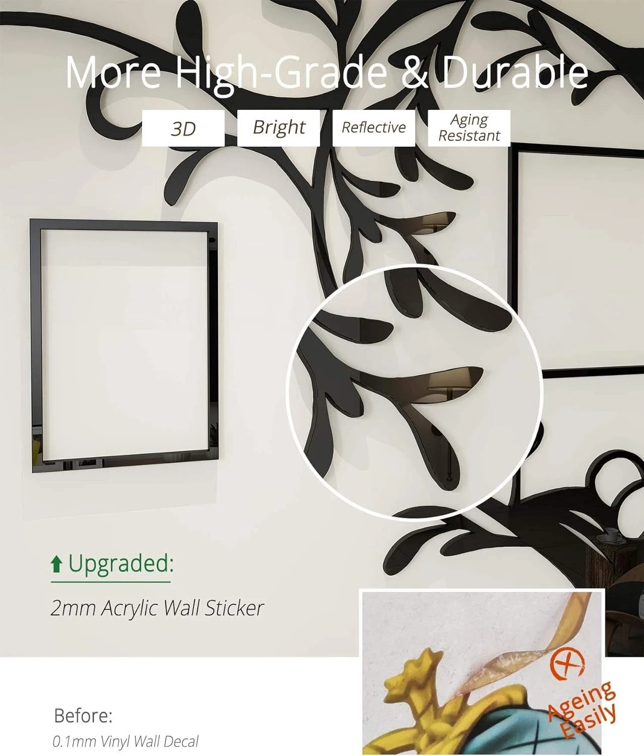 لوحة جدارية على شكل شجرة عائلة من الأكريليك - ديكور قابل للإزالة يمكنك تركيبه بنفسك مع اقتباس ملهم